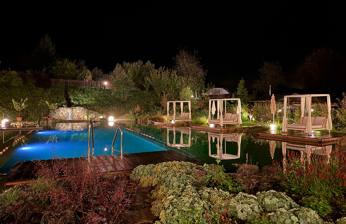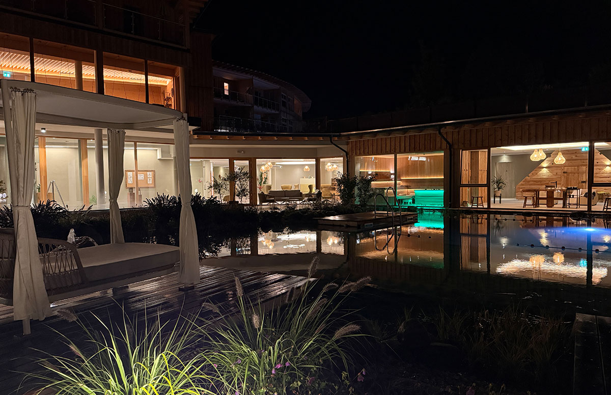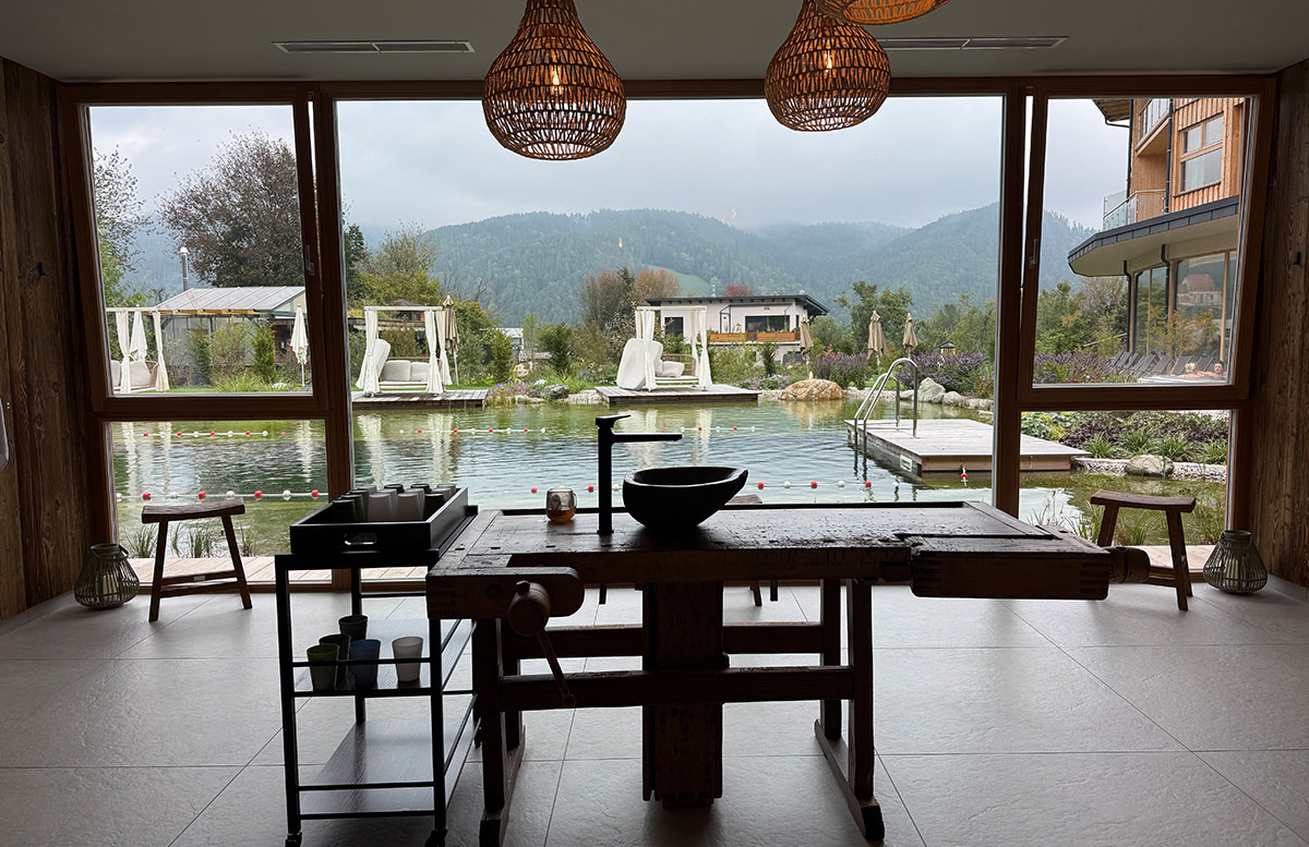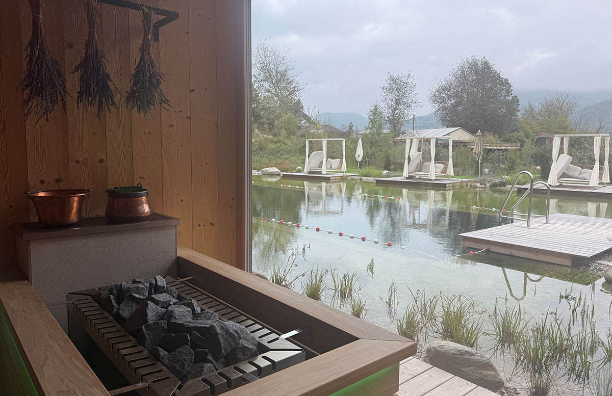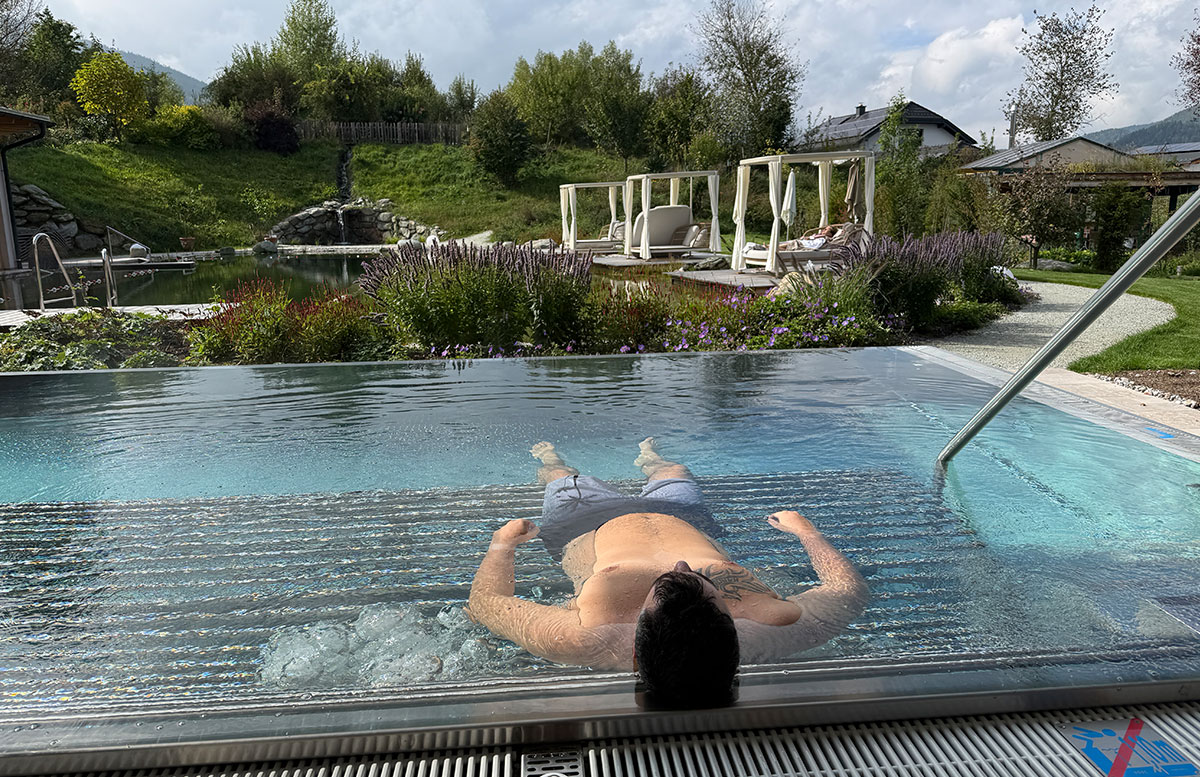 Wer sich nach Ruhe sehnt, wird im neu renovierten Adults-only-Bereich ab 14 Jahren fündig: Hier gibt es eine große Panoramasauna, Dampfbad, Infrarotkabine und Ruheräume mit Ausblick ins Grüne. Besonders gefallen hat uns der Naturbadeteich im Garten mit überdachten Holzliegen und der warme Whirlpool. Für Massagen oder Anwendungen (z. B. Kräuterstempel, Heubad, Gesichtsbehandlung) kann man sich im Spa „Lebensgut“ verwöhnen lassen und die Massage hier kann ich euch sehr empfehlen.
